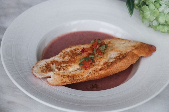 青岛西海岸威斯汀酒店知味标帜餐厅奶油扁豆汤配蒜香面包