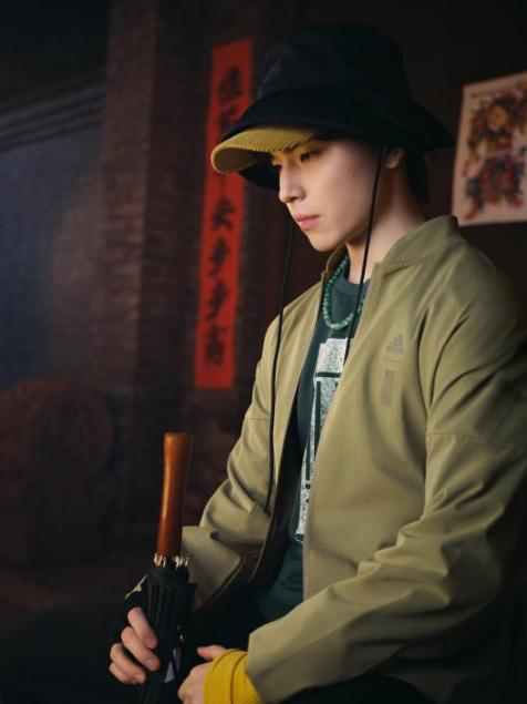 系列单品在舒适中融入中式美学,富有线条感的剪裁版型力求诠释独一无二的极简风格。另一款外套采用低饱和大地色,衬托肤色并彰显沉稳侠士型格。同时,肩部饰以adidas logo渐变反光印花,光影转换间点亮整体造型,加注高级镭射镂空工艺,美观且更加透气,磨砂纹理与整体面料遥相呼应,搭配同系列套头卫衣,力求为侠士风格带来全新注解。