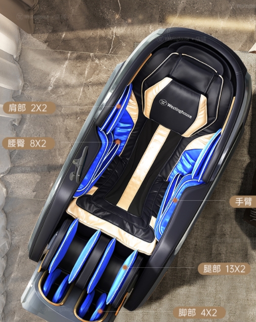 74组全身气囊,覆盖肩/臂/腰/臀/腿/足,环抱包裹舒适释压,沉浸式按摩体验。