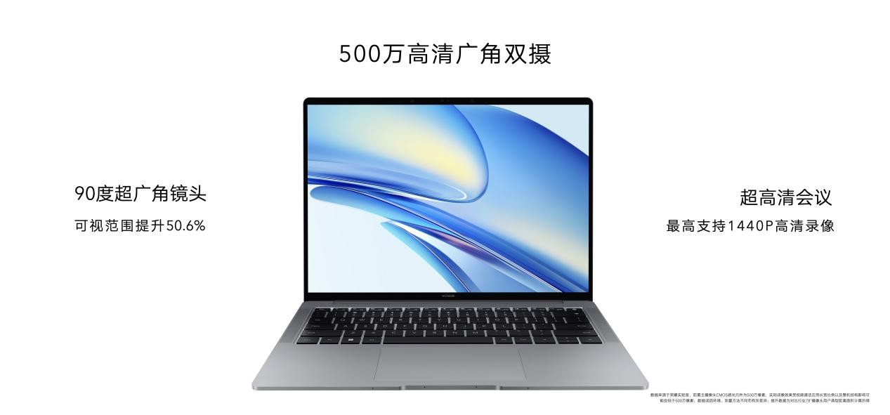 荣耀MagicBook V 14 2022配备500万高清广角双摄,90°大广角让摄像头的可视范围相比传统摄像头提升50.6%,1440P超高清分辨率画面,配合4个高信噪比麦克风,以及4个高低分频扬声器的超高配置,为用户打造出体验非凡的音视频会议系统。