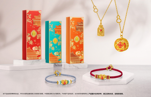 本季三款首饰以古法黄金温润色泽诠释东方复古典雅腔调,兼具低调尊贵之感与吉祥韵味。国风插画风格包装盒,以“晴山蓝”、“朱柿橙”、“胭脂红”三种颜色表达岁月静好的心境,配合代表四季的花卉图样寓意四时常安,更有故宫保和殿与国子监辟雍殿两殿守护,以细节诠释优雅之美,尽展东方韵味。